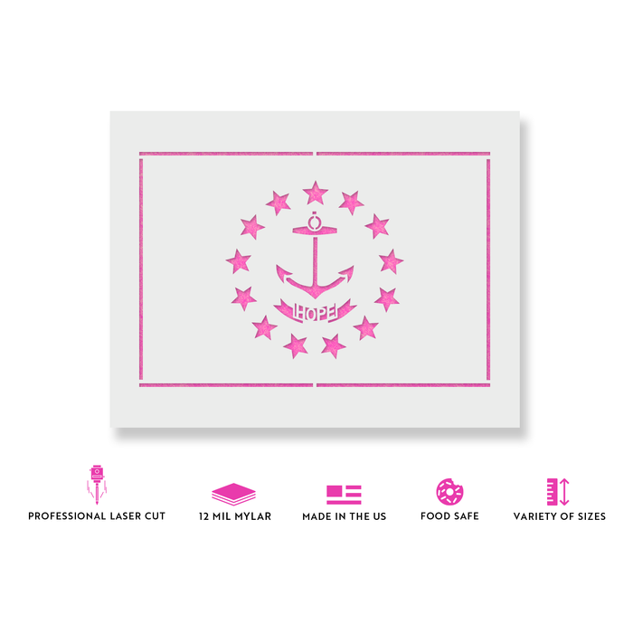 No matter what you choose to do, we have you covered. We laser-cut the Rhode Island State Flag stencil in a range of sizes, including:
